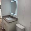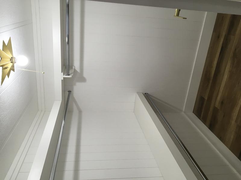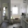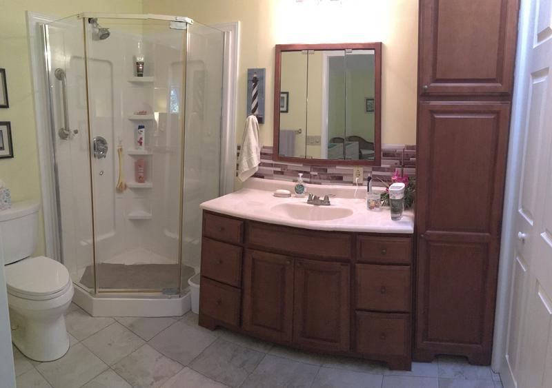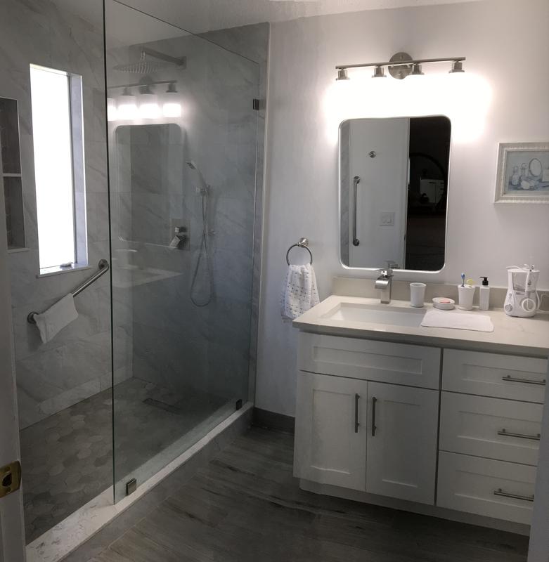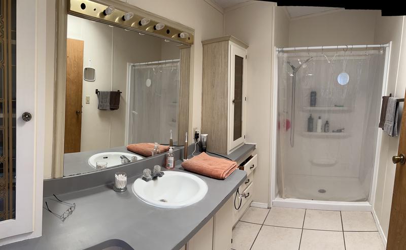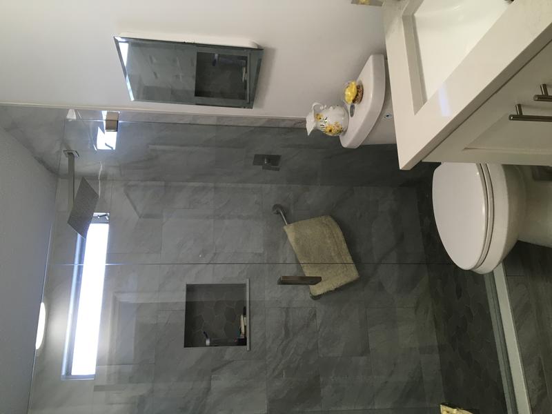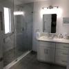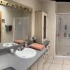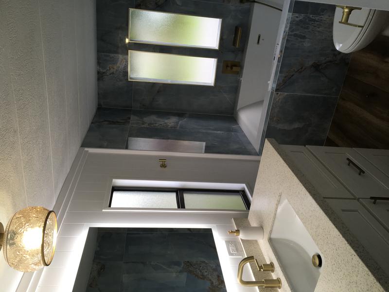 2 Full Bathrooms With New Solid Wood Shaker Vanities with matching Solid Surface Countertops, Large Anti fog LED Lighted Mirrors, Frameless Glass Shower Doors in Both Bathrooms, Large Format Porcelain Tiles In Both Bathrooms, Master bath Has a Bain Ultra 72x42 Two Person Therapeutic Tub With 44 Jets and Heated Back Rest.